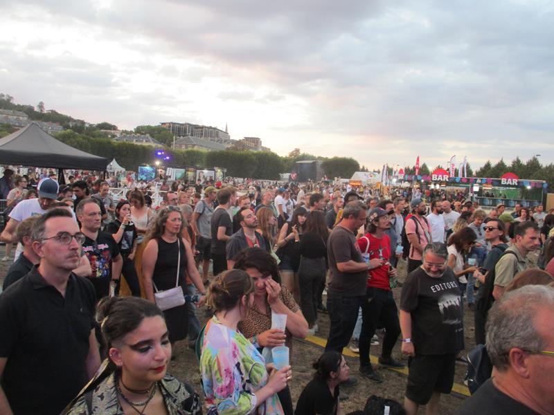 Concernant le site, les circulations y sont à la fois plus fluides sur certains aspects (traversée inter-scènes plus simple qu'à Clisson ou à Evette-Salbert !), et moins sur d'autres (principalement les toilettes, point faible historique, et beaucoup de place inexplicablement perdue cette année dans ces espaces !). Au lieu de rajouter des chiottes suffisantes en nombre, on rajoute de la place pour faire la queue devant des chiottes insuffisantes en nombre ?! Curieux calcul ! Quant à la queue à faire pour manger, pardon mais c'est un reproche idiot : c'est une constante partout, inévitable en festival si on a faim à la même heure que tout le monde (19h-22H) - mais si on est bradyphobe, on peut tout à fait se décaler... et on peut aussi très bien apporter son pique-nique, hein, hellooo !