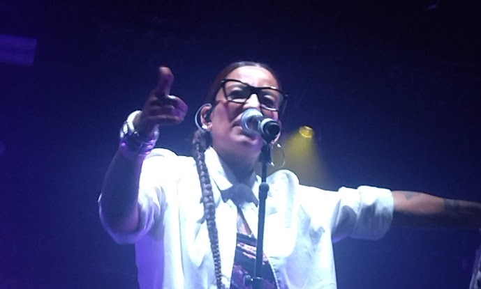 Une musicalité assez rare dans ce type de concerts, entre ses complices derrière elle l'osmose est totale, un vrai groupe qui porte la voix et le flow impeccable de la MC.