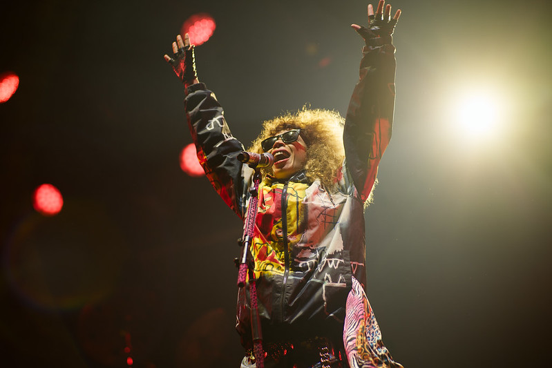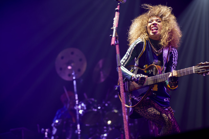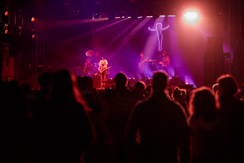 Elle joue avec une guitare à la forme inhabituelle et son look très coloré reste une attraction même si on est pas assidus de sa discographie.