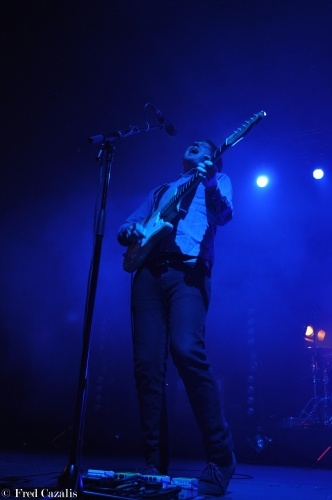 Une fois remis de cette nouvelle apparition de la ravissante Anglaise, on se reconcentre sur le véritable show que sont en train de donner les jeunes musiciens. Nettement plus énergiques en live qu'en album, ils offrent quelques belles montées rock entre leurs refrains pop entraînants et leurs riffs ensoleillés. On est à mi-chemin entre les verts pâturages de leur Irlande natale et les plages dorées de Californie. Leur pop-rock électrisé continue de faire monter en température un public qui remplit presque complètement L'Aéronef et qui n'est plus qu'une gigantesque masse mouvante. Les basses claquent dans l'air surchauffé, les guitares se font envoûtantes, souvent atmosphériques pour transporter les spectateurs lillois, qui en redemandent. Le concert se déroule à cent à l'heure, le groupe a d'ailleurs bien peu de mots pour la salle. Le chanteur prend juste le temps de tremper régulièrement ses lèvres dans un verre de vin rouge... so French! Les Two Door Cinema Club concluent déjà leur set par Eat That Up, That's Good For You, auquel ils offrent un final explosif, épileptique, à des années-lumière de la version studio.