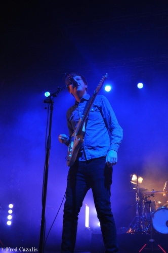 Après une assez longue attente, il était enfin temps pour les stars du soir, les Irlandais de Two Door Cinema Club, de faire leur entrée. Mondialement connus depuis le carton de leur titre Something Good Can Work, ils débutent à Lille une tournée française qui doit se terminer en apogée à L'Olympia le 25 novembre. En se glissant entre la scène et les barrières pour immortaliser l'évènement, on s'aperçoit que le public est décidément jeune et majoritairement féminin. Mais au-delà des premiers rangs, c'est toute la fosse qui est pleine de fans, qui connaissent le répertoire du groupe par cur (bon, ça fait un album, quoi). Enthousiastes dès les premiers morceaux, ils tapent volontiers des mains pour accompagner les quatre garçons, tout particulièrement sur le fameux Something Good Can Work, qui intervient en cinquième position de la setlist et qui se voit couronné d'un tonnerre d'applaudissements. Sur le côté de la scène, on aperçoit le chanteur des Teenagers qui se dandine et qui prend même quelques photos, pendant que Florrie et sa robe léopard fendent la foule vers le bar. C'est toujours sympa quand les premières parties assistent au concert.