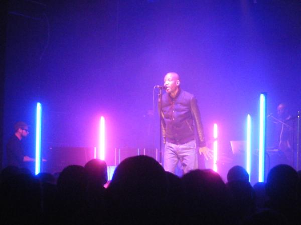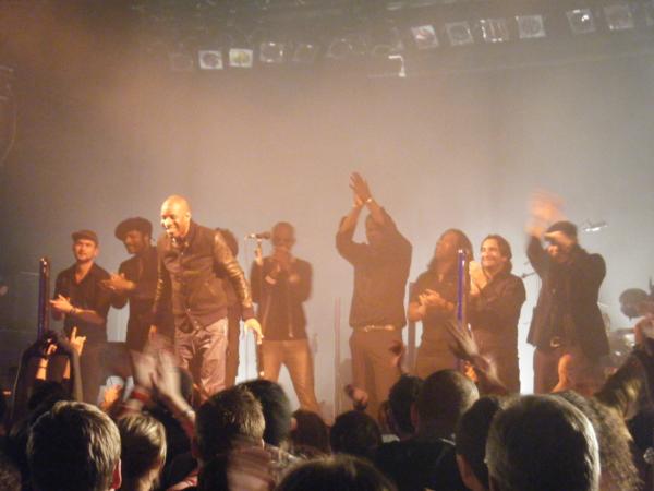 Passage annuel à la concentration de concerts Avec le Temps, à l'occasion de la venue biennale d'Abd Al Malik. Un type que j'ai déjà vu au moins trois fois, mais qui écrit des choses souvent magnifiques, parfois même bouleversantes. Même si d'aucuns lui reprocheront à jamais une chanson jugée trop moralisatrice (qui dit pourtant la même chose qu'une autre de Casey & Hamé), et qu'il ne chantera d'ailleurs pas ce soir. Pas de première partie finalement, j'arrive donc juste à temps pour un concert qui a commencé à 20 h 30 pétantes.