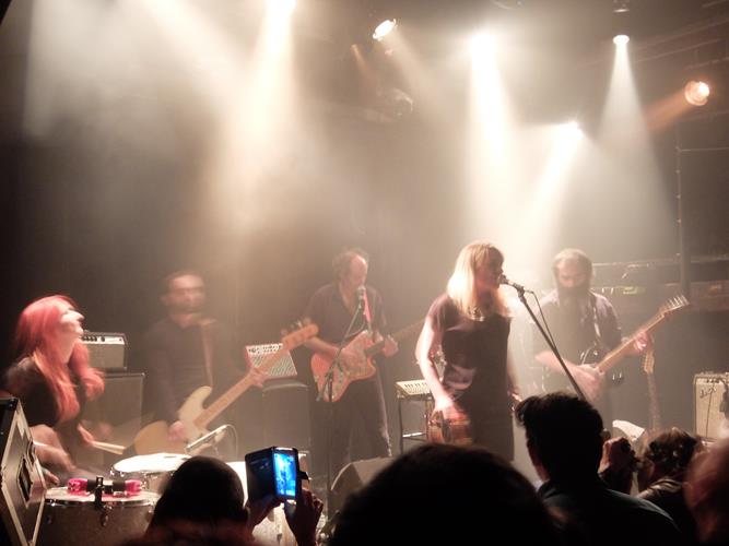Dommage mais enfin, parti pris respectable par ailleurs bien sûr. Sinon à nous faire rire, le groupe parviendra néanmoins sans difficulté à nous faire frétiller de joie, en ressortant de vieux titres ultra-efficaces de ses tiroirs déjà bien garnis, comme Salvation ou Funeral Baby, où l'électricité devient palpable dans l'air moite - on note que M. Limiñana se garde malicieusement les notes les plus jouissives des morceaux (hé, c'est les siens, il a bien le droit non ?!), de celles que le public se joue en air guitar. Crank sonne comme du Sonics avec des filles (c'est super !), Green Fuzz comme du Cramps perpignanais (c'est sympa !), tandis que Garden of Love résonne comme un titre dont la guest star manquerait quand même cruellement (ce qui le fait un peu moins).