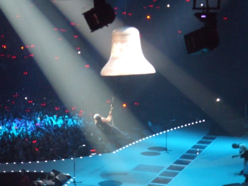 Petite transition habile vers un autre pic du concert, la monumentale Hells Bells ou Brian se pend à la corde d'une cloche géante tandis qu'Angus, désormais torse-poil ("My precioussss ...!!"), défouraille toujours plus - les deux gaillards commencent à aller gambader sur la passerelle, ce qui hystérise encore davantage la fosse. Tout comme Shoot to Thrill ou les miaulements inimitables du chanteur font merveille, ou la plaisante War Machine pendant laquelle je m'absente pour découvrir, horrifié, qu'il n'y a plus de bière pression au bar !