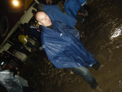 Pour notre part, proprement trempés jusqu'aux os, on a encore du galérer pour indiquer (en l'absence de repères) à nos amis comment arriver en cinquante coups de fils environ, les chercher un bon moment, tomber sur eux presque par hasard, les accompagner aux tentes avec leurs affaires déjà bien humidifiées. Et enfin pouvoir se rendre sur site, où un grand sketch a commencé dans le champ de boue de l'accès principal, pour trouver enfin comment obtenir le bracelet d'accès auprès de ces abrutis d'organisateurs.