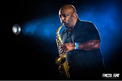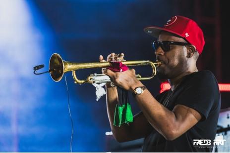 La pyramides de synthés et la batterie vacillent sur leurs fondations, la faute à Xavier Gordon et Anwar Marshall convoyant tous les deux une énergie proportionnelle aux slaps de Marcus Miller. Les arbres ont des épines fluorescentes, ça sent la marijuana et le chewing-gum Léo. Funk-Jazz de tireur d'élite, funk-jazz qui vise les pieds. Ça danse comme à un concert de Primus. Les spectateurs sont hypnotisés, non pas seulement par le bassiste de légende, mais aussi par le reste du groupe. Donald Hayes fait japper son saxophone, des lasers sortent des lunettes noires de Russel Gunn. On note qu'il n'y a qu'un instrument a corde sur l'estrade, la basse en vedette. D'où vient cette absence de guitare ? L'explication est simple : ce n'est pas nécessaire. Elle adoucirait peut-être même trop la pression infra-sonique primordiale à une manifestation de ce style.