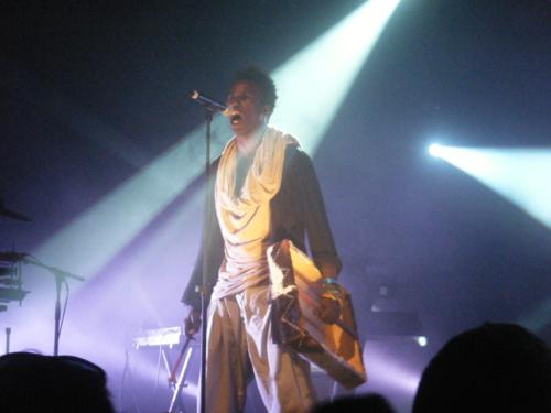 On apprécie tout autant, dans un autre genre, la mythique Black Stacey a capella, suivie d'une lente et intense New Day (également plus intéressante en live que sur disque), avant que le groupe dégage sans crier gare. Après avoir bien braillé, on arrive à les faire revenir, pour un court extrait ancien de Fearless, mais pas tout le morceau : il enchaîne sur un étrange "DSK Disco" (si on a bien compris !), au son de plus en plus industriel et au final dingue et énorme, qui se finit sans davantage prévenir, nous laissant en transe et tout cons... Car une fois son hold-up réussi, le groupe a filé : Saul Williams, même dans une mauvaise passe artistique et plutôt mal entouré, reste en tout cas capable de faire vibrer ses fans !