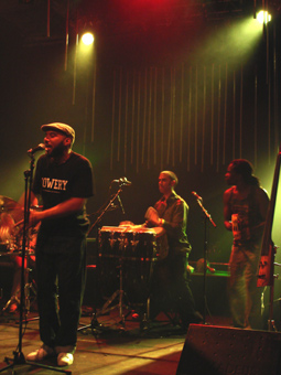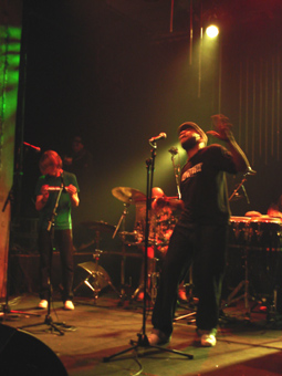 L'affiche annonçait funk/slam, je dirai plutôt Afrobeat à la sauce spoken word et des ambiances vaudou. Bref, quel que soit l'intitulé de leur style, le but ultime de leur musique est la transe collective.