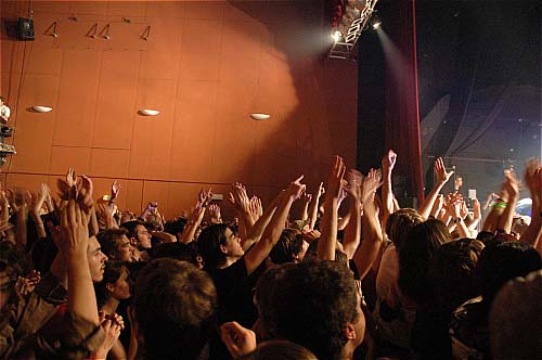 Et après une première partie clonesque mais pas désagréable vinrent les ptits gars de Sheffield. Pas la peine de raconter le concert, Philippe auparavant l'a très bien décrit. Les "merdeux", comme ma copine les appelle, ont bien du talent, de la technique et de l'avenir (manque encore un peu de présence sur scène mais bon, ils n'ont que 18-20 piges et on aurait vite tendance à l'oublier une fois les yeux fermés). Les chansons sont bien huilées, la basse ressort davantage sur scène (ce qui n'est pas pour déplaire), le son est parfois énorme, parfois crade, mais toujours bien senti selon les chansons, le tracklisting est aux peits oignons, et surtout ils ne se prennent vraiment pas la tête. En témoigne le nouveau morceau extrait du EP éponyme dont Philippe cherchait le titre (avec notamment l'imparable "Cigarette Smoker Fiona" retravaillé depuis les démos dispos sur le Net) : "Who the fuck are Arctic Monkeys ?".