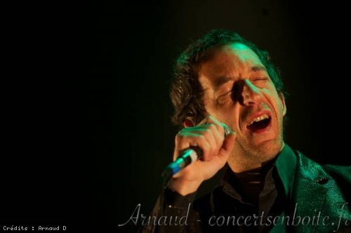 Il semble toujours chercher à être au plus près de son public, tout sourire, plein de regards attentionnés et le plus souvent dans une lumière qui joue à entretenir une pénombre tantôt rouge, tantôt bleue. Pourtant, cet état d'apesanteur va être un peu troublé par un claviériste anxieux, qui semble avoir des soucis techniques ... Qu'à cela ne tienne, on compensera avec la batterie !!
