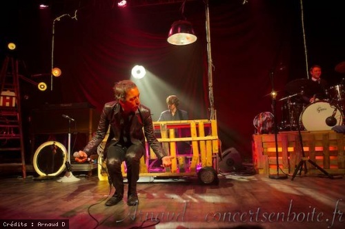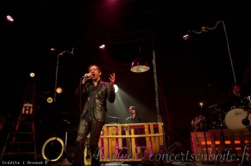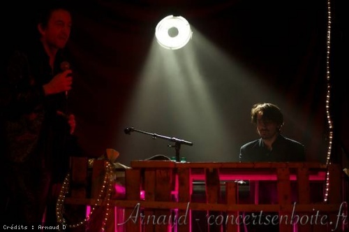 Et c'est Arthur himself qui ouvre le bal, tout de paillettes vêtu, en prenant place derrière le piano habillé de cagette ... Joli paradoxe (et je pense que ce ne sera pas le dernier !) Puis, ses compagnons viennent le rejoindre, lui et sa belle voix rauque au timbre chaud qui s'élève. Il est là, sous un drôle de lampadaire, quasi couché sur le clavier et éclairé de rouge par en-dessous. C'est captivant.