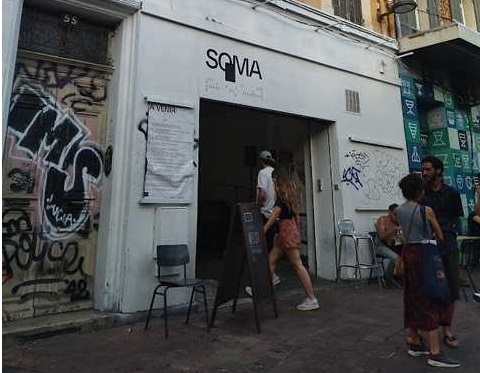 Cette fois ce n'est pas très loin que le susnommé disquaire, au Soma une galerie avec une grande terrasse devant laquelle j'ai du passer des centaines de fois sans jamais avoir mis les pieds, où sont programmés pas mal de vernissages et de dj sets.