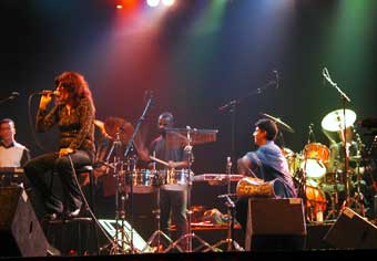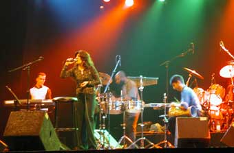 Sur scène plusieurs constatations : d'abord elle est un plus âgée que je ne le pensais (sur le disque on ne voit pas vraiment son visage). Comme sur le disque un gros son et une superbe voix : bien grave, bien râpeuse et un peu cassée. La musique oscille entre raï et musique tsigane (ça m'a fait penser à Na Zdorovie par moments avec le mélange derbouka, violon notamment). C'est marrant autant il y a beaucoup de Taha, Mami, Khaled et autres Faudel, autant il n'y a pas beaucoup de femmes dans ce créneau.