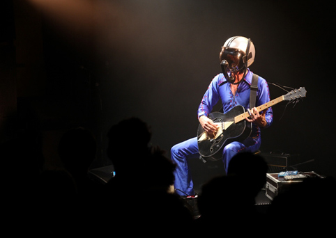 Ce gars-là est un showman né, un performer très salé, un entertainer à l'américaine et un infernal One Man Band : il a bien compris qu'il faisait partie du show bizness et il en rajoute volontairement des tonnes pour faire monter la mayonnaise. Qui prend, malgré la relative monotonie dégagées par des chansons très similaires les unes des autres... Des chansons qui peuvent ne parler de rien selon lui, si ce n'est de donner envie de faire Boom Boom Bang Bang avec son ou sa partenaire, comme la jouissive Bump Pow ! Bump Bump Bump Pow ! Bump Pow ! Avec un tel lascar jouant des morceaux aussi instinctifs, il suffit de se rapprocher de la scène - pour voir de plus près la bête à l'uvre - pour avoir les yeux qui pétillent et les zygomatiques qui fatiguent. Ce mec là, il est terrible en live ! Il est même capable de faire parler sa guitare au cours d'un sketch à se pisser dessus... Après un ou deux passages au milieu du public pour remercier l'assistance et l'ingé son, Bob Log III tire sa révérence. Avant de revenir deux fois à la grande joie du public !