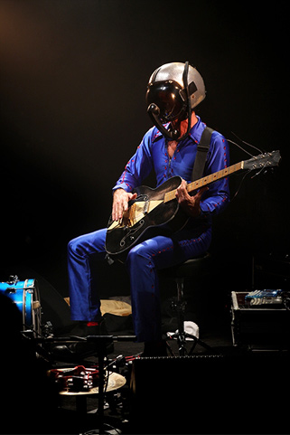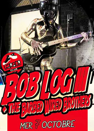 En vieux routier américain fréquentant assidûment le circuit indé, Bob Log III n'a aucun mal à rendre hystérique l'assistance avec son punk ‘n blues explosion ultra répétitif, méchamment basique et sacrément épicé... Entre deux facéties et fanfaronnades, le guitariste batteur chanteur - un One Man Band, quoi - n'oublie pas de balancer à la face du public ravi ses titres de blues électrique admirablement primitifs. Son jeu de guitare (parfois ultra rapide, l'homme ne manque pas de le faire remarquer pour faire le cake), ses interventions sur la caisse claire ou les cymbales avec ses pieds et ses beuglements dans son micro/téléphone/casque (un engin si impressionnant que Daft Punk s'en est inspiré selon certaines sources invérifiables... ), créé une sorte de blues démoniaque donnant envie de boire beaucoup d'alcool et de brancher les gonzesses. Comme le fait d'ailleurs lui-même Bob Log, quémandant moult bières et whiskys au bar, jouant "des chansons si sexy qu'à la fin les femmes sont enceintes !" et invitant deux jeunes filles à sauter sur ses genoux au rythme de ses coups de boutoir sur la batterie...