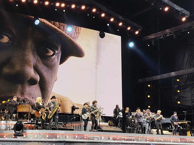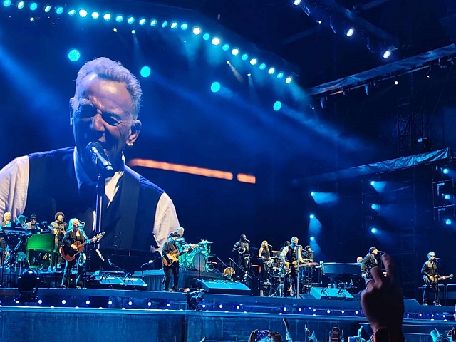 Ce qui frappe c'est la complicité et la complémentarité entre les musiciens. Ils sont une petite vingtaine, mais chacun occupe son espace sur scène et soniquement : 2 guitaristes en plus de Bruce, bassiste, batteur, clavier/accordéon, violon/guitare, piano, choeurs, section de cuivres + saxophone évidemment, percussionniste. Quel régal de profiter de cet orchestre rock ! Jetez une oreille aux enregistrements lives disponibles en ligne, c'est assez dingue.
