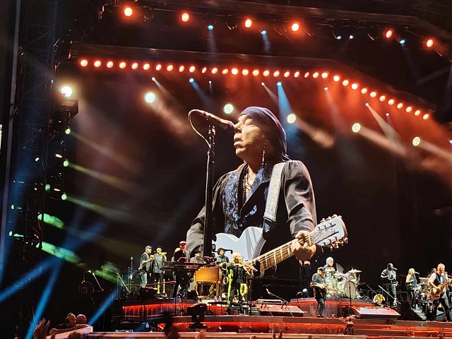 La performance passe à vitesse grand V, on n'arrête pas de chanter de de danser. On s'extasie devant la puissance rythmique de Max Weinberg à la batterie et de Garry Tallent à la basse. De notre position, la basse était sensiblement en avant et quel groove ! On avait parfois l'impression d'entendre des morceaux de rnb (à l'ancienne) : quelle version de My city of ruins notamment ! Nils Lofgren reste un immense guitariste avec des soli plus qu'inspirés, Youngstown en tête. Les duos à la guitare s'enchaînent également avec Steven Van Zandt ou Bruce. Ecoutez son solo sur Rainmaker véritable appel à la pluie et ode contre les démagogues et vous vous rendrez compte qu'il n'a pas à rougir devant ses 2 acolytes.