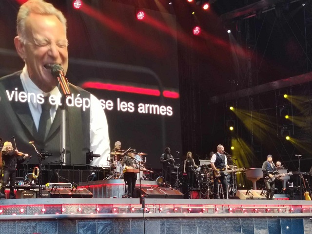 Les titres s'enchaînent plus de 2H50 durant, parfois entrecoupés de paroles anti-Trump prononcées avec conviction par le patron. Certaines d'entre elles et quelques titres bénéficient même d'une traduction en français sur les écrans du stade, ce qui est fort appréciable.