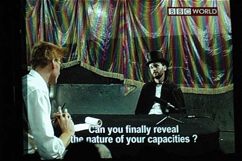 Ouf... Bordel, on en a pris pour son grade ! On essaie un peu de se rappeler de tout, en vrac, dans sa tête, c'est dur, alors on cherche des adjectifs pour en parler avec ses voisins, est-ce qu'on est choqué, agressé, nerveux, excité, séduit, ou alors tout à la fois ? En tout cas, c'est sûr, on voit pas des trucs comme ça à tous les coins de rue !!! Mais en fait, on a adoré ça. Parce qu'on a rien compris, parce qu'on a tout compris, parce qu'on voulait être surpris et qu'on l'a été, là, pour de bon, parce que ça fait un bien fou de ne pas pouvoir servir de ses codes ou de ses habitudes face à cette déferlante de mots, de textes, de sons, de musique, d'images, de gens bizarres, et qu'être dérouté, c'est peut-être un des derniers luxes du spectateur blasé que l'on finit tous par devenir.