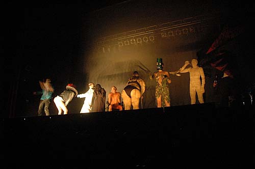 On reconnaîtra Oshen qui veut "injecter des substances" dans la vessie de la Momie, les incontournables Mandrake, frères monstrueux et autres dingueries invraissemblables, bref, il faudra enfin quitter la salle sous l'assaut d'un stroboscope hyper fort qui flashe à hauteur d'oeil toute la salle sans interruption, après qu'un final en forme de ligne apocalyptique ait ramené toute la troupe de monstres sur scène pour faire chacun leur besogne surréaliste...