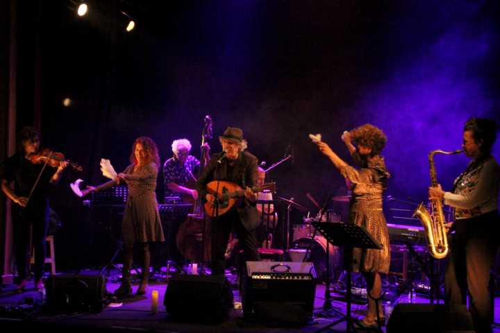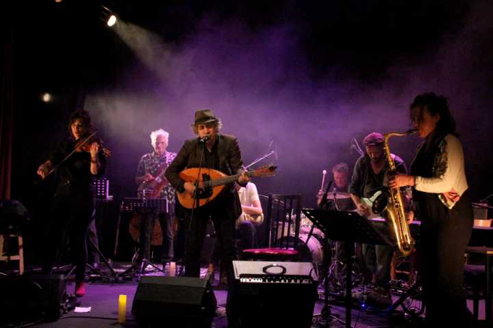 Le noyau dur du groupe ce soir est de très haute tenue, avec la saxophoniste Christine Roch et la violoniste Mirabelle Gilis (complice de Miossec) entre autres esthètes.