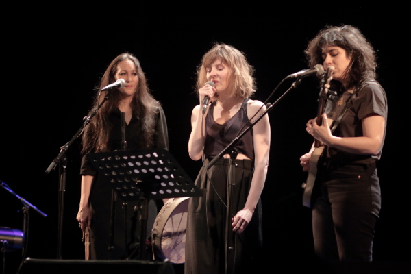 Un trio de femmes débarque, trois musiciennes très expérimentées dont Amélie les Crayons, chanteuse, conteuse, est au tambour, Buridane au chant et Laura Cahen au chant également. De belles voix très harmonieuses. La voix cuivrée de Laura Cahen se marie magnifiquement avec nos deux autres chanteuses avec ses paroles Tu te vois grandir contre vents et tempêtes... Nous chasserons la nuit à coups de joies... Nous adorons la vie.