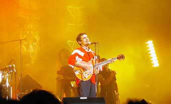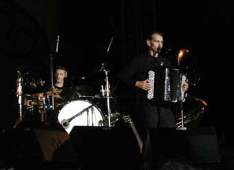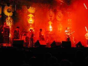 Des problèmes de son au début et le côté pas très intime de la scène en plein air devant 20000 personnes m'a fait un peu moins apprécier le set. Et puis il faut bien reconnaître que lorsqu'on les a déjà vu on est moins impressionné par le jeu avec la lampe qui pend du plafond etc ... Des morceaux un peu plus nerveux où les gens pogotaient et une belle reprise de la P'tite dame en rouge (moi j'veux qu'ils reprennent celle qui fait Allez les enfant tuez vos parents ...). Ils avaient quand même l'air d'être contents et de "s'amuser" enfin ceux chez qui il était possible de déceler une émotion sur le visage : le chanteur, le grand, la pianiste etceteriste et le batteur, les autres étant encore moins expressifs. Pas le meilleur concert que j'ai vu d'eux.