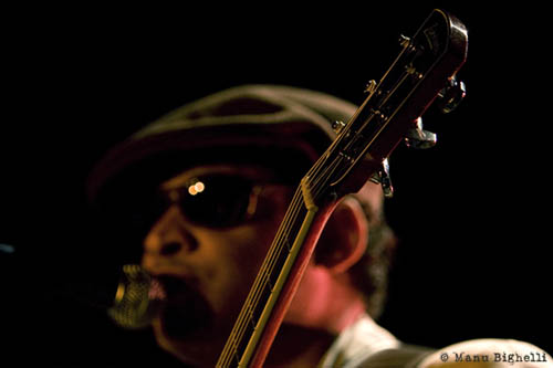 Son style de jeu hallucinant (la main posé clairement au dessus des cordes) lui permet de jouer la basse et la batterie en même temps. Ca peut paraitre légrement abstrait comme ça...donc la prochaine fois faudra être la !!! Sans parler que le monsieur se paye aussi le luxe de jouer de la trompette avec sa seule bouche...si si.. Je ne me fous pas de votre gueule petits malins.