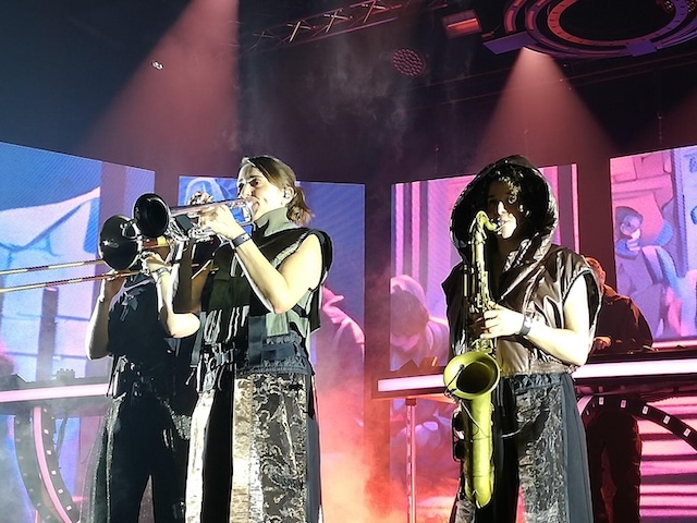 Ils sont accompagnés sur une grande partie des titres de 3 superbes joueuses de cuivre (trompette, saxo, trombone). C'est un réel plaisir d'en profiter au premier rang. Que dire des 3 MCs labellisés CMR qui, chacun dans son registre, mettent le feu à la scène et maintiennent le public sous pression.