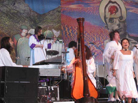 Une musique intemporelle, une vingtaine de musiciens (section de cuivre, flûte, harpe, guitare et orgues...) et de jeunes choristes en robes blanches, menée par un chanteur complètement déjanté, The Polyphonic Spree est une drôle de secte baba cool, une sacrée suprise qu'on est pas prêt d'oublier, même si l'album est difficilement... La suite