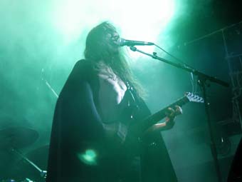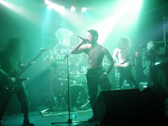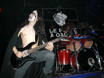 Le concert débute avec un combo de Black/atmosphérique au chant féminin très agréable, Crimson garden, assez basique musicalement (alors qu'un des 2 guitaristes joue sur un modèle Ibanez Jem) mais surtout sans aucune pêche ! tu m'étonnes Albert le batteur n'est autre qu'une boite à rythme. Personnellement je n'avais jamais vu ça of my life (sauf au concert de Depeche mode dans les années 80 qd j'étais tout tout petit) ! Dommage car avec un batteur ça le ferait carrément plus. Faites leur donc passer le message.