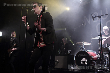 40 minutes de DJ set pour chauffer la salle, une petite pose et hop Crocodiles débarque (sans sac !) sur scène. Au départ un duo (Brandon Welchez et Charles Rowell), le groupe est aujourd'hui composé de 5 membres (3 garçons/2 filles) et pour ce set Dee Dee est dans les churs. Dès leur entrée sur scène, on sent que le groupe a envie de tout donner et sans trainer. Le chanteur est excité, il gesticule pas mal (il est déjà presque en nage) et c'est parti pour 45 minutes de concert dans l'esprit indie noisy pop. Ayant vu de nombreux concerts dans ce style entre 1988 et 1994 (Jesus & Mary chain, Chapterhouse, Becketts, Boo Radleys, Teenage Fan Club, Moose...), voir en 2012 le groupe Crocodiles, me fait un effet tout bizarre, c'est un retour vers le passé, mais on sait très bien que le rock est un éternel recommencement. Rien à dire, ce groupe reprend avec une belle réussite, les codes de cette époque. Ils ont l'énergie, le style et bien sûr la musique et les instruments vintages. Le son du synthé de marque Farfisa (avec la musicienne assise sur un ampli Roland), ça le fait ! Le bassiste porte sur sa veste un badge de Patti Smith, la batteuse aux cheveux courts, frappe avec énergie son instrument, le guitariste transpire bien et le chanteur/guitariste a le "bon" look (lunette, veste et pantalon noire, Doc, chemise à fleurs et un petit tatouage d'une chauve souris sur le poignet). Donc sans trainer et sans set list, le groupe envoie la sauce avec leurs morceaux noisy teintés de pop garage. Pas mal de mélodies à fredonner sous les larsens. Sans être un mur du son, les amplis envoient la purée. Les oreilles fragiles ont besoin de boules Quiès ! Bien sûr, difficile de ne pas penser à Jesus & Mary Chain... La salle composée d'un public jeune, (qui a peut être été sevré par la scène "bébé rocker") est très enthousiaste au contact du groupe. On bouge pas mal dans la fosse. L'ambiance est tellement sympa, que l'on ne voit pas le temps passer, et après 45 minutes de concert, c'est déjà fini.