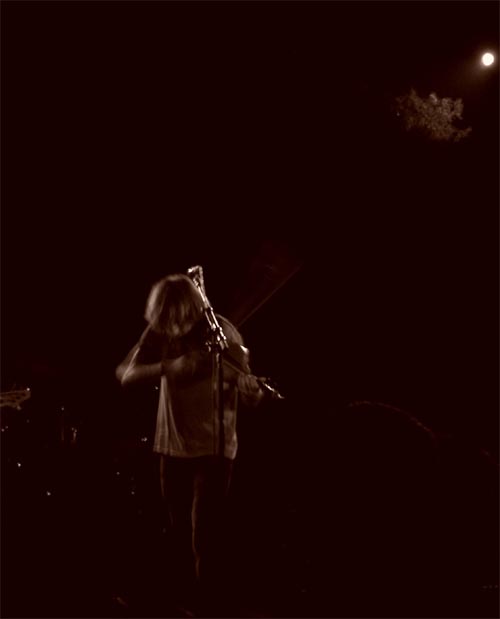 Bien sûr il reste quand même sa marque de fabrique : violon, mélodicas, toy-piano mais ce soir ce sera plus un podium pour les guitares que l'habituelle valse de violon, guitares, clavecin, scies musicales, vibraphone, violoncelle, mélodica, accordéon, marimba.