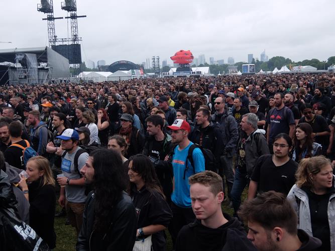 Il faut également signaler que nous étions excellemment bien placé dans ce lieu. Grâce aux agents de la sécurité mentionnés plus hauts, nous n'étions littéralement qu'a deux minutes à pieds des scènes, et que notre position géographique nous permettais d'entendre avec limpidité mêmes les concerts se tenant sur la scène principale. Un avantage plus qu'appréciable pour un dégénéré des guibolles, et si nous ne nous sommes pas rendus toujours sur les lieux des shows, on les a quasiment tous entendu. Pour reprendre certaines images qui circulent sur les réseaux sociaux, on appréciera le contraste évident entre ces paisibles metalleux qui pourtant font peur aux grands-mères ignorantes, et les violents supporters qui masque leur hypocrite envie de guerroyer comme des brutes moyen-ageuse sous le vernis autorisé du football, véritable anesthésiant du peuple.