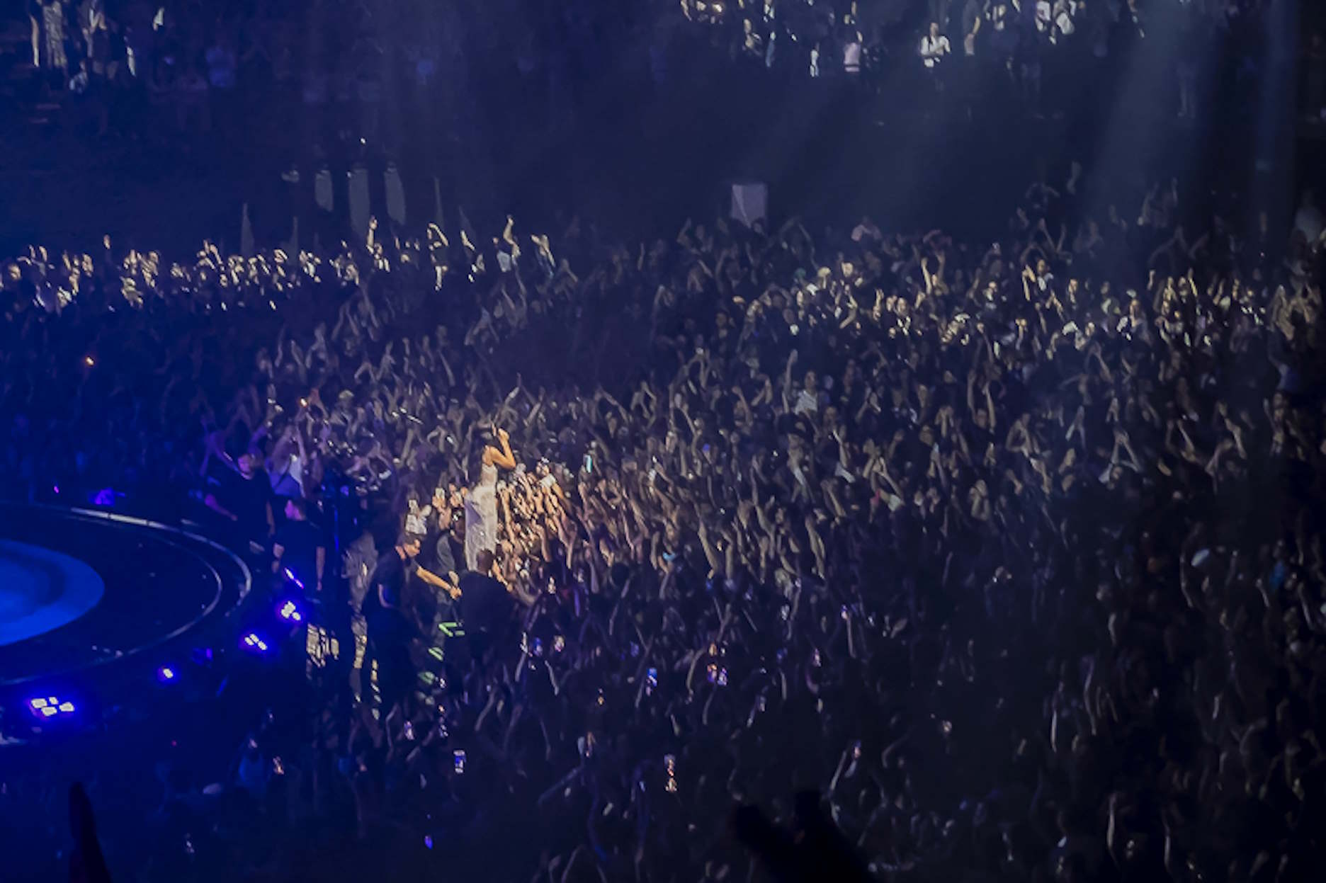 Le concert monte encore d'un cran lorsqu'elle entame "Be The One" debout sur les barrières, soutenue par ses gardes du corps, lançant les refrains au public dans une communion totale. Enfin, après un ultime changement de tenue - noire et dorée, digne d'une impératrice pop - elle livre "Houdini", morceau clé de Radical Optimism. Un dernier uppercut visuel et sonore. Pas de rappel après ça, ce qui peut laisser un petit goût d'inachevé, tant l'osmose était forte. Mais les dernières paroles - "Catch me or I go, Houdini" - résonnent encore longtemps, comme une promesse de retour.