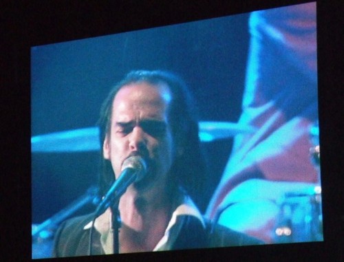 Avec un remarquable sens du timing du chaud et du froid, à nouveau une chanson plus calme et nouvelle, Dream (ça y est, la punition de Warren est levée, à lui ses guitares miniatures chéries, dont il tire des soli et des bruits invraisemblables), et Man in the moon, une chanson à faire chialer même un tueur d'enfants. Et ensuite, climax attendu mais dépassant toutes les espérances : Ladies & Gentlemen, could you please welcome the No Pussy Blues !! Dont le refrain Korgesque est au delà de tout ce que vous pouvez imaginer sur scène, vrombissante, craquante, outrageusement sexuelle, explosive, c'est la quintessence de ce que Nick Cave peut faire de mieux ! Pour ma part, c'était fatal, je me tranforme à partir de ce point en bête dingue, la bave aux lèvres, sautant partout et notamment sur mes amis en faisant des gestes hystériques.