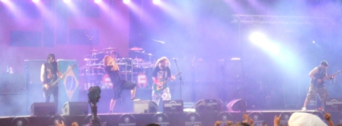 Plus loin, on reconnaîtra Territory de ... Sepultura, les percus de la très old school Terrorize, la plutôt marrante The Doom of All fire (imaginez la unplugged et pas hurlée, franchement on dirait pas une comptine pour enfants ?), Never Trust qui à la réflexion est peut-être un poil bourrine. Il va sans dire qu'à ce stade, la fosse de la grande scène ressemble à la séquence finale de Braveheart : des gens s'empoignent et volent dans tous les sens et il en sort régulièrement des jeune et moins jeunes gens suants, tuméfiés et parfois saignants du crâne, les habits déchirés et le regard hébété... il est vrai qu'il y a peu de concerts de metal cette année, alors les aficionados donnent tout ce qu'ils ont !