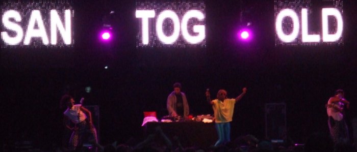 Après ça, écouter la pétillante (et jolie) Santogold fera quand même du bien... Habillée comme une vraie cagole hollywoodienne (de loin on dirait un peu Cathy Guetta, jusqu'à ce qu'elle chante et qu'on réalise qu'elle, elle a du talent), elle est hélas venue sans instruments, je suis un peu déçu parce que ça avait l'air d'être de la vraie musique sur disque ! Heureusement, elle est accompagnée de deux choristes, qui font en outre des chorégraphies assez marrantes. Elle grille d'entrée ses trois titres les plus addictifs et les plus dansants : LES Artistes, You'll find a way, Say Aha et je suis donc un peu inquiet pour elle...