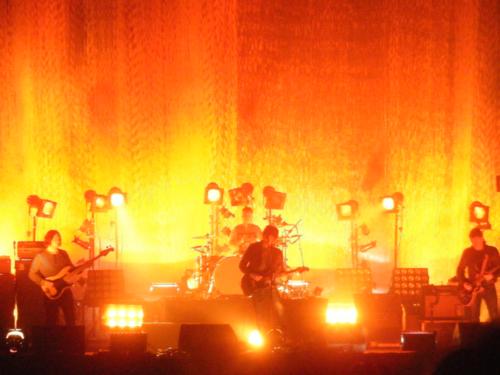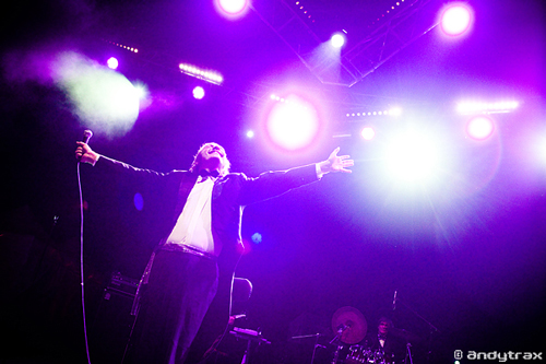 Bon, ce qu'on aime bien chez Aaron, c'est la chanson U-Turn, mais surtout parce qu'on a aimé le film qui allait avec... Pour le reste, leur trip hop agréable à l'oreille, est quand même gentiment chiante, trois crans en dessous de celle d'Archive-de-la-bonne-époque... On ne s'explique pas vraiment les yeux fardés du chanteur et après quelques titres, il est avéré que tout sonne un peu pareil et qu'on est surtout très agacé par son côté animateur BAFA (Alleeeeez ! on dirait qu'on pèterait les plombs, la, tout de suite, tous avec mouaaaa !). On laisse donc les plus jeunes en sa compagnie, pour aller manger un kebab (infâme : ça au moins ça ne changera jamais aux Eurockéennes, dommage, on avait tenu presque 3 jours sans craquer !) et s'asseoir en bonne place pour le mystérieux show qui doit suivre, et qui suscite une grosse curiosité de notre part.