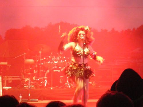 Ayant déjà au moins 5 ou 6 fois communié avec les toujours passionnants Arcade Fire (et la dernière fois encore fin 2010), on va cette fois-ci leur faire faux bond (d'autres gens ont le droit de savoir à quel point ils sont excellents !) et s'intéresser à une projet très excitant sur le papier : une carte blanche à Katerine et aux pétillantes strip-teaseuses du New Burlesque, qui nous ont enchanté de leur joie de vivre dans le film Tournée... La prestation commence donc en petit comité, sur la plage (au vu de la grosse pointure sus-citée).