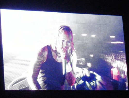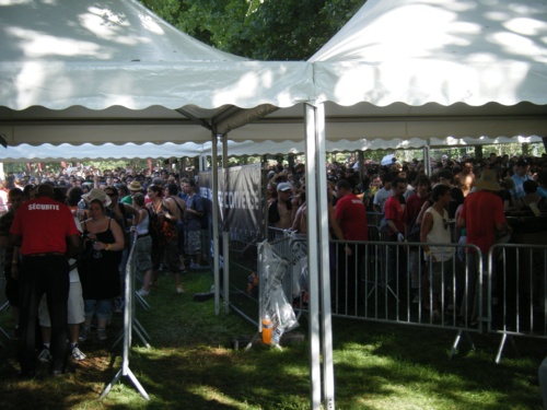 On ne fera par contre qu'apercevoir le très effrayant et rugueux Sefyu (en réalité un garçon courtois qui nous a remercié pour sa chronique de disque) : le concert se finit sur Molotov 4, avec plus de dix minutes d'avances sur l'horaire indiqué... Dommage, on aurait aimé tester en live l'intensité de la glaçante Suis-je le gardien de mon Frère ?. Le public qui semblait plutôt à fond (et limite en train de se taper dessus, d'ailleurs - non, ce n'est pas le moment de la photo ci-dessus qui bouche juste un trou !), a l'air aussi étonné que nous de cette fin intempestive.