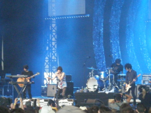 La musique des Yeah Yeah Yeahs, dont notre collègue Pierre a très bien relevé le côté également sexuel, est idéale pour faire monter encore la température : la chanson Gold Lion s'avère un pied monumental à écouter en live ! Même les titres à la connotation plus électro du dernier disque passent bien à la toise, comme Heads Will Roll où je tombe brièvement amoureux de la chanteuse. Totalement jouissive également, s'avère Honey Bear et ses "Do It ! You Wanna do it !" - il faut dire que le groupe est très affuté.