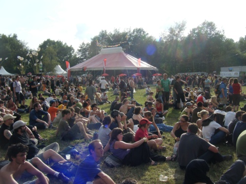 Les remplaçants Cypress Hill ne retiendront notre attention que quelques instants - on aurait bien écouté Insane in the Brain en live, mais écouter tout un concert pour ça, pas moyen, trop de choses à voir ! On découvre alors la bête sauvage qui chante dans Monotonix, hirsute et suante, en slip, haranguant dans diverses langues (anglais et hébreu) une foule hilare sous le chapiteau dans un concert assez sauvage effectué au milieu de la foule. Musicalement on est dans un rock punk-metalloïde assez classique et sans grand intérêt, par contre la performance est évidemment très amusante à regarder, confortablement installé en dégustant la nouveauté culinaire majeure du festival, le flammekueche !