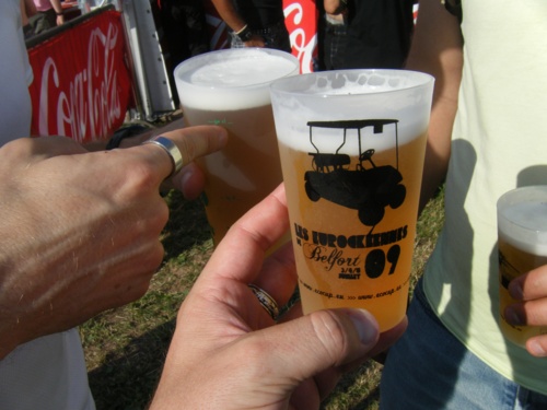 21ième édition des Eurockéennes de Belfort, 16ième participation d'affilée pour moi, cette fois on peut dire qu'une partie du public de 2009 n'était pas encore née, ou pas encore propre, lors de ces deux événements ! Comme à l'accoutumée Météo France a prévu à peu près les pires avanies et comme depuis quelques années, touchons du bois, on s'en est tirés pratiquement sans une goutte sur la tête. Après s'être fait confisquer plusieurs bouteilles de jus de fruit amélioré (qu'on avait qu'à mieux cacher, d'ailleurs on ne nous y a plus repris), on retrouve avec plaisir le site, peu modifié depuis l'an passé à part quelques sponsors : disparition regrettée du stand Rivella, boisson énergisante (et dessaoulante !) à base de lactosérum.