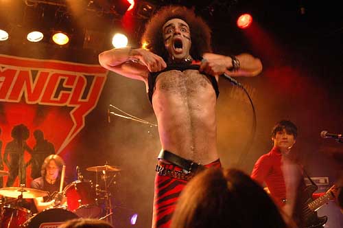 Pendant les morceaux le chanteur à la voix aigue est intenable, enchainant sauts, déhanchements, tournoiement de micro, poses lascives et autres glamouseries. Entre les morceaux, il est irrésistible, balançant avec second degré sa mégalomanie et son amour du public. Une performance et un plaisir scénique constant et jubilatoire, les Fancy sont définitivement fous et insatiables.