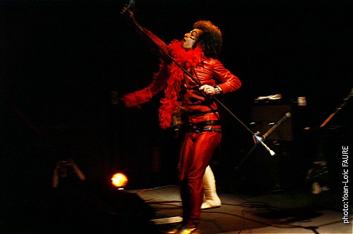 Le groupe débarque sur scène, un poster géant d'eux même est affiché sur le côté de la scène, Jessie le chanteur nous dira d'ailleurs dans son trip mégalo (2nd degrés pour ceux qui auraient pas compris) c'est super de pouvoir se regarder quand on chante, parce que vous croyez que je vous regarde, ô public, mais non, je ME regarde !. Tout d'abord débarque leur batteur, celui au look le plus métal 80's, le bassiste classieux de chez classieux, le/la guitariste avec ses avant bars à frange et ses bottes lacées, puis le chanteur, coupe afro, cuir rouge moulant et boa de la même couleur.