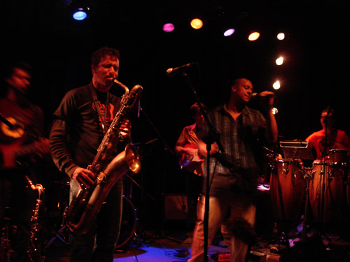 Sur scène le groupe ne ménage pas ses efforts pour réchauffer l'ambiance "un peu figée". Pendant près de deux heures (hormis une petite pose).il enchaine les tubes de son album "natural juice" et reprend même "no agreement" de FELA.