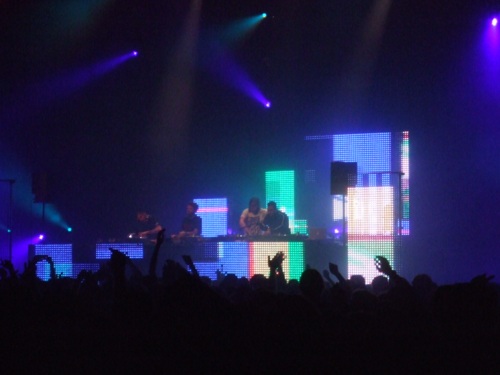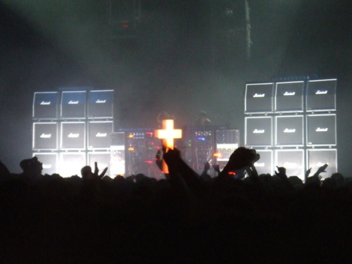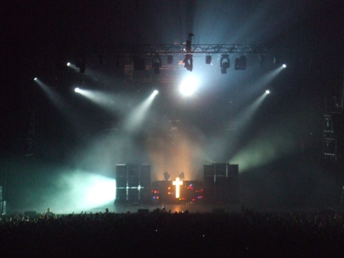 Un luxueux (en prix !) flammekueche plus tard et on s'y remet : Justice, qu'on connaît déjà plutôt bons sur album et excitants sur scène. La mise en scène n'a pas varié d'un iota : la croix, les deux murs d'amplis factices, et envoyez la purée ! Genesis, très remixé et très bon, plusieurs chansons non identifiées (nouvelles sans doute ?)... la putassière DANCE (le public adore), avec un long pont a capella et une fin déchaînée... DVNO très funky... La non moins racoleuse The Party, ok en live et très sympa vue de tout en haut (comme tout le show, pour le moins très visuel).