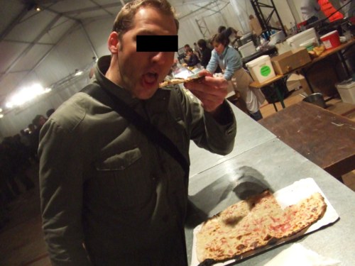 Mais au moment où la nuit envisage de tomber, le rideau se tire sur le rock : les Artefacts vont virer à la grande partouze électro, et prendre une autre dimension... On réalisera plus tard qu'en effet, personne n'avait parlé de festival rock ! Et que jamais, non plus, on n'avait vu auparavant quelqu'un avec un T-shirt Kansas of Elsass... A ce propos les tartes flambées sont très bonnes, la bière aussi, par contre y'a toute la soirée trop de monde aux tickets, c'est-à-dire pas assez de comptoirs et donc, un manque à gagner ! Pourquoi, gotverteck'l, ne pas en mettre d'autres, des plus petits par exemple, ailleurs sur le site ? Ca c'était pour l'intendance - dans l'ensemble on a quand même finalement réussi à se bourrer la gueule !