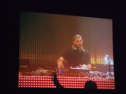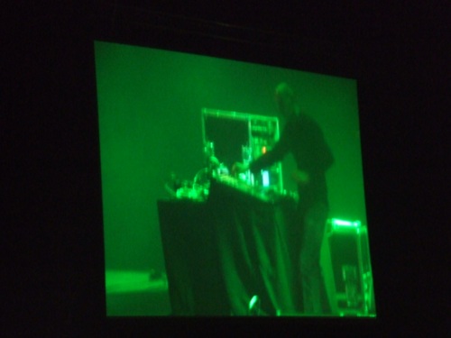 La salle s'est un peu vidée, certes. Mais il reste Mr Arbez, le beau gosse taciturne... alias Vitalic ! Lui qu'on a déjà vu (enfin plutôt, aperçu derrière ses machines) nous essorer à Marseille (et encore avant, à Paris...) et dont le formidable LP OK Cowboy revient comme qui dirait tout seul sur notre iPod (et notre platine) tous les deux mois... Comme à l'accoutumée, le set commence par 15 bonnes minutes où l'on ne reconnait rien et où l'on essaye en vain de prendre une bonne photo - mais c'est qu'il se cache bien le bougre, derrière ses machines et une quasi-absence d'éclairage de la scène.